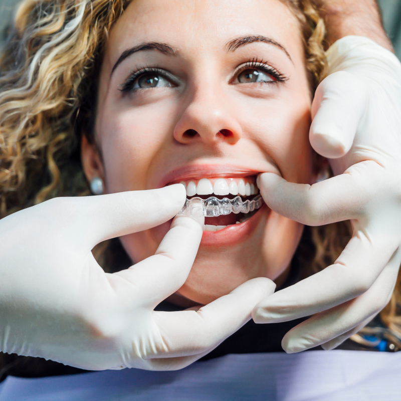 Invisalign is an orthodontic procedure that uses clear aligners to straighten teeth instead of metal braces. Invisalign is a set of custom-made transparent braces that cover your teeth and gradually pull them into the appropriate position. They are less obvious than typical metal braces since they are transparent and can be put on and off. Clear plastic aligners are used in Invisalign therapy. A 3D scan of the patient’s mouth is used to customize the clear aligners. The teeth are then moved in tiny increments using custom-made clear aligners until the right position is achieved.